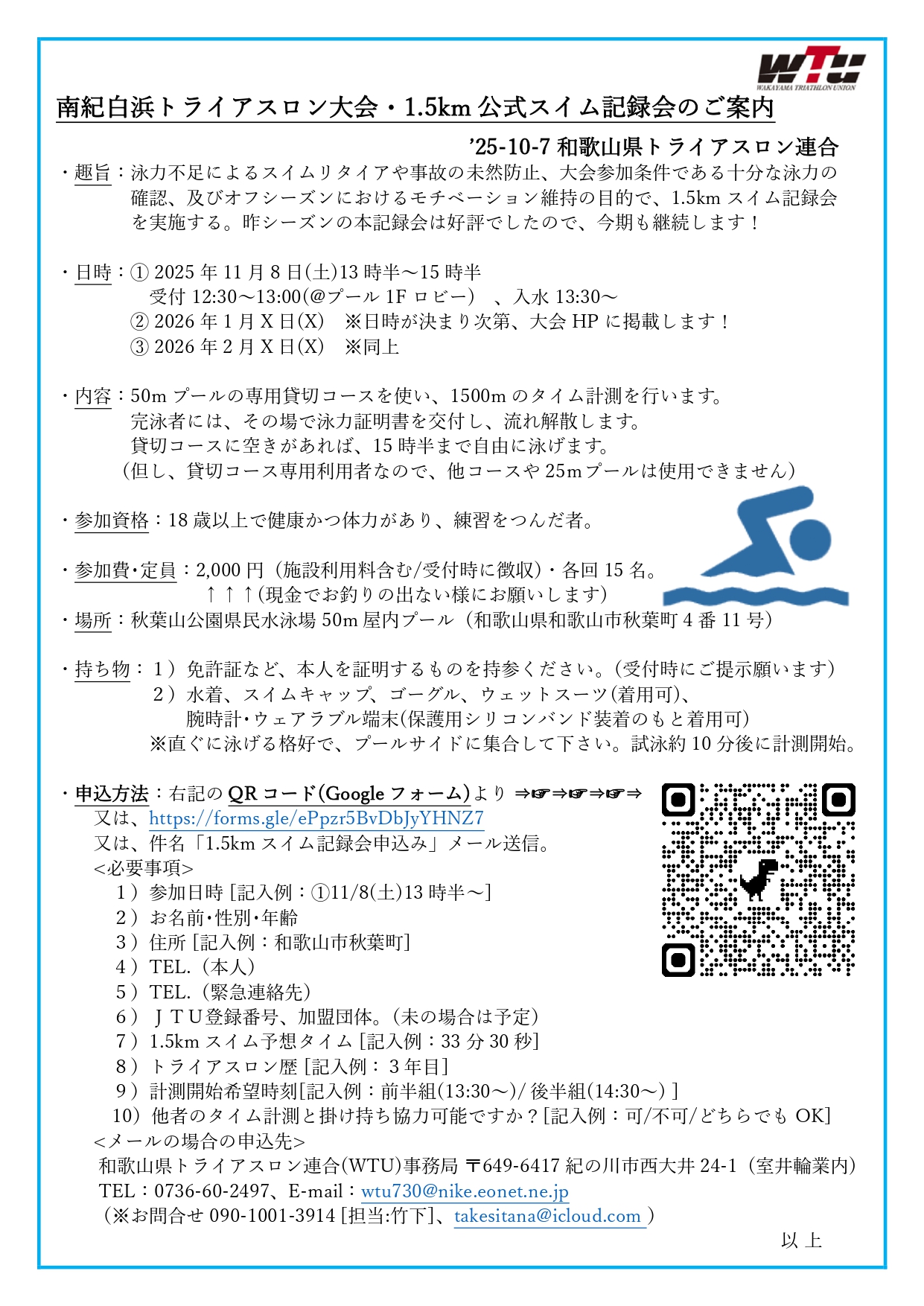 南紀白浜トライアスロン大会「1.5km公式スイム記録会」のご案内